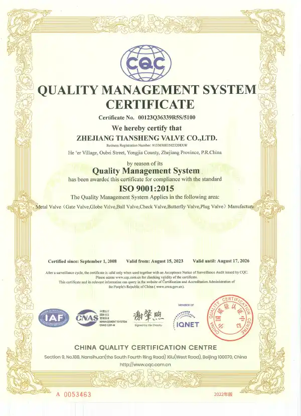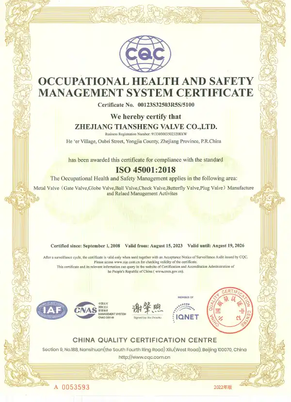 Ball Valve Fire Safe Certificate