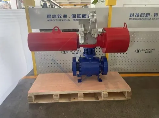 A trunnion-mounted ball valve designed for fail-safe emergency isolation in critical pipelines. It integrates a mechanical trunnion support system (anchoring the ball at top and bottom) with rapid-acting actuation to ensure immediate shut-off during emergencies (e.g., leaks, overpressure, or fire).